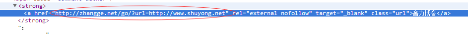 看到这里,相信你应该能轻松领悟方法了吧?就是在外链链接之前加上【http://博客域名/go/?url=】即可!需要修改博客哪个位置的外链,只要找到该位置对应的主题模板,然后参考上述代码修改即可!