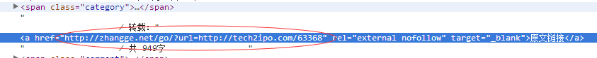 echo '⁄ 转载:'.'<a href="'.home_url().'/go/?url='.$reprinted.'" rel="external nofollow" target="_blank">原文链接</a>';