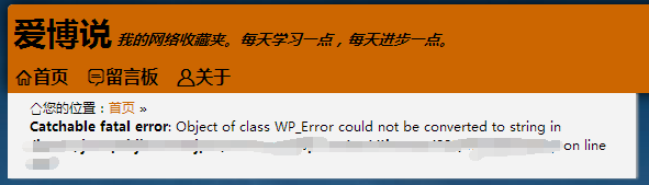 wordpress出现Catchable fatal error: Object of class WP_Error could not be converted to string的解决办法