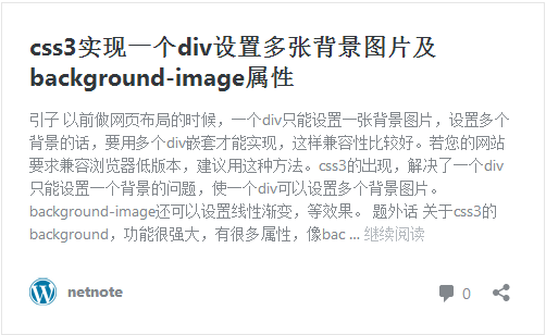 只需要简单在后台文章编辑器直接填入文章的链接即可,自动显示该文章的标题,摘要以及特色图片(如果设置了的话),并且还有站点图标(没有则使用 WordPress 默认图标),留言链接和分享链接,如:(采用截图,本站已经移除Post Embed 功能,2016年9月19日修改)