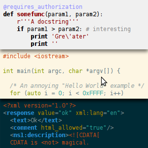 - 支持多语言混合的代码高亮