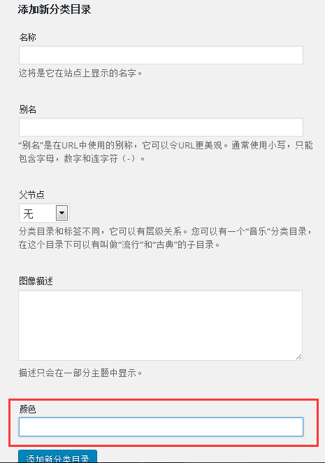 为新建分类目录的表单添加颜色项: