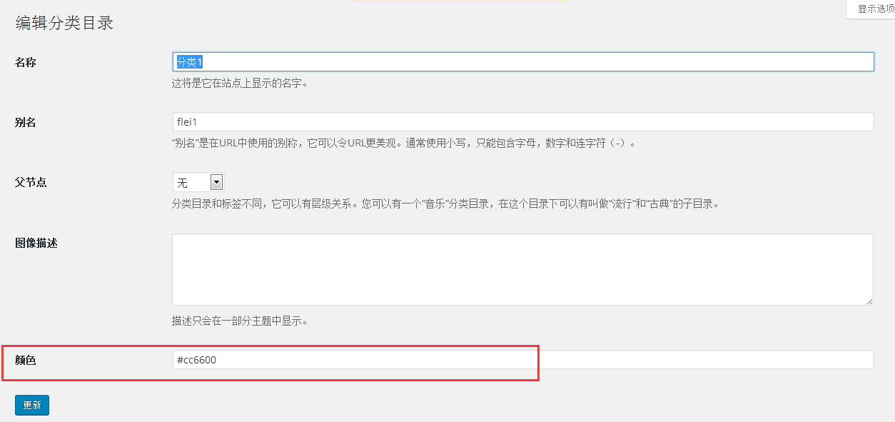 编辑分类目录增加颜色项