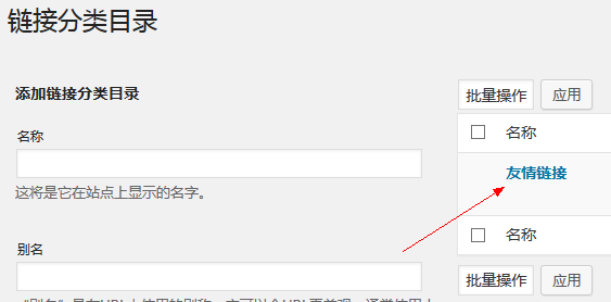 然后再连接里面添加一个名为友情链接的分类目录,然后在里面添加链接吧