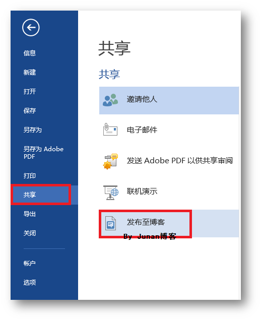 2.打开Office Word ,新建一个Word文档。点击 文件——共享——发布至博客