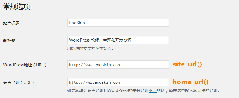 原文来自:http://www.endskin.com/home_url-site_url-difference/