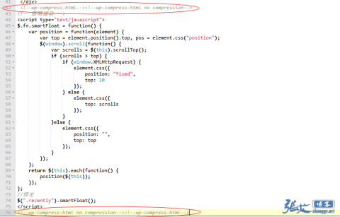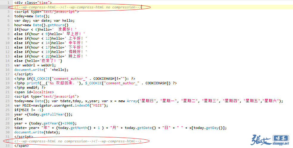 //自动在存在高亮代码的文章收尾插入免压缩注释 By 张戈博客
