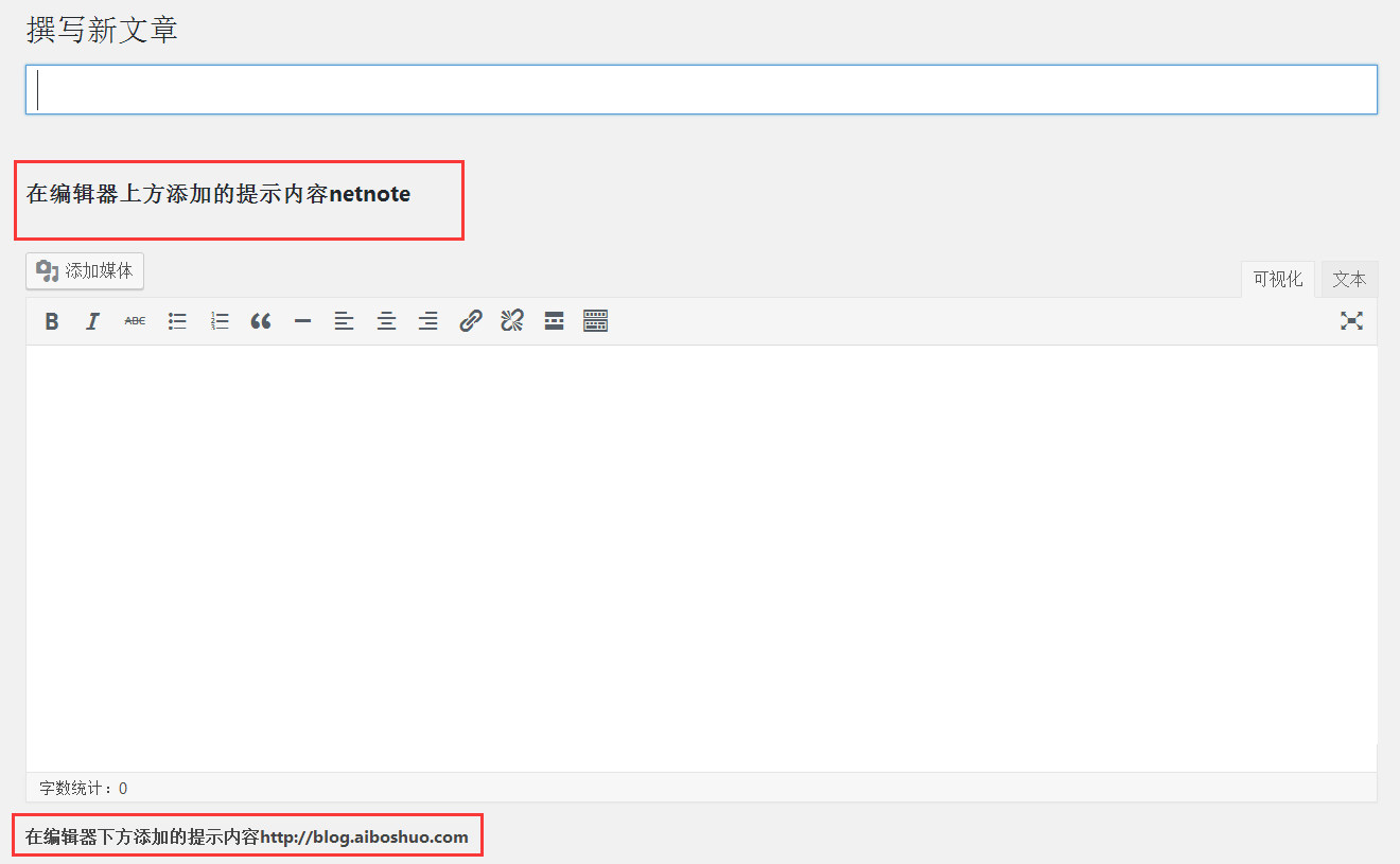 在WordPress后台文章编辑器的上方或下方添加提示内容