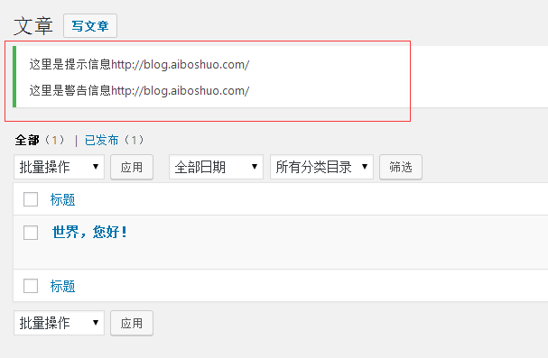 wordpress后台指定页面顶部添加提示信息