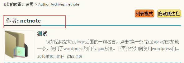 访问作者存档页显示如下:
