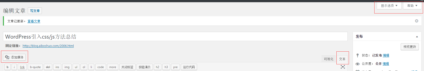 WordPress点击文本模式、添加媒体、显示选项没反应的解决办法