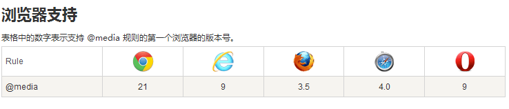 表格中的数字表示支持 @media 规则的第一个浏览器的版本号。