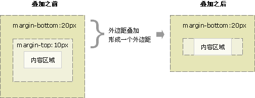 外边距重叠是指两个垂直相邻的块级元素,当上下两个边距相遇时,起外边距会产生重叠现象,且重叠后的外边距,等于其中较大者。图示: