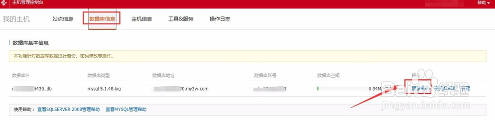 选择PHP版本之后需要重置密码:数据库信息 > 重置密码