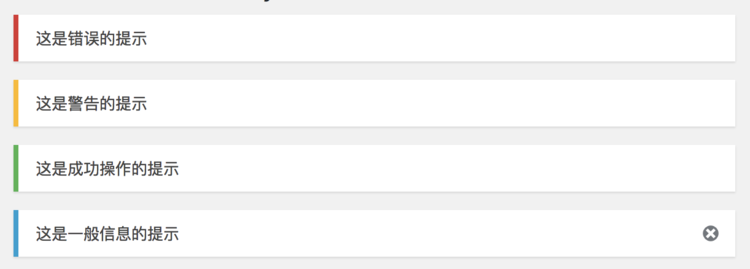 如果类似上面图中最后一个,在最右侧显示关闭的图标,可以加入 is-dismissible 的 class:
