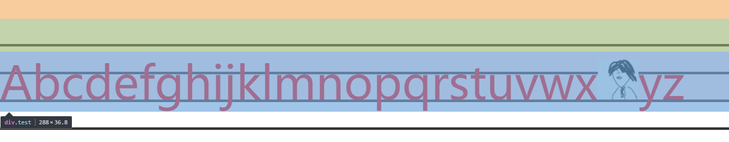 通过上两图的对比,能发现我之前遇见的问题,就是img放置在div中,div的高度会比图片的高度高3px,3.5px,4px等情况。因为第三格的距离还是存在,也就能理解之前的有一种解决方案,如果div中不存在文本,直接设置 font-size: 0; 。但浏览器有最小字体限制,也就不是那么好的解决方案了。