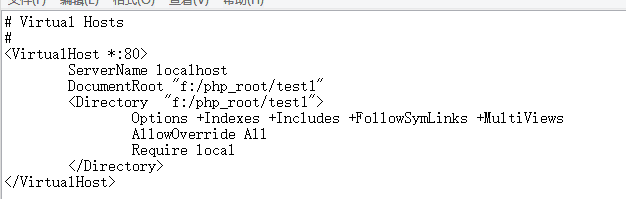 在网上查了查,是配置虚拟主机的意思,用文本编辑后发现配置信息如图: