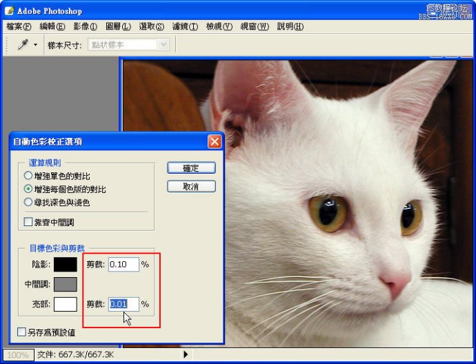 使用以上功能時 Photoshop 預設值會裁切掉 0.1% 陰影和亮部的像素,很容易造成最亮處及最暗處的細節喪失~