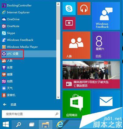 第一步、点开开始菜单,点击里面的电脑设置,没有的话,点击所有应用,找到并点击电脑设置(zPC 设置)