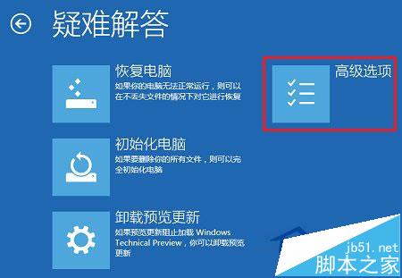 第五步、在疑难解答界面,点击高级选项