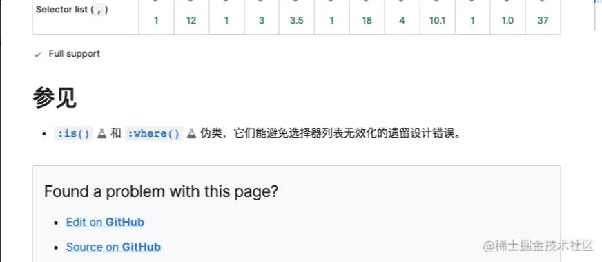 于是,打开万能的mdn,翻到css,选择器,选择器列表的时候,发现了意外收获:developer.mozilla.org/zh-CN/docs/…