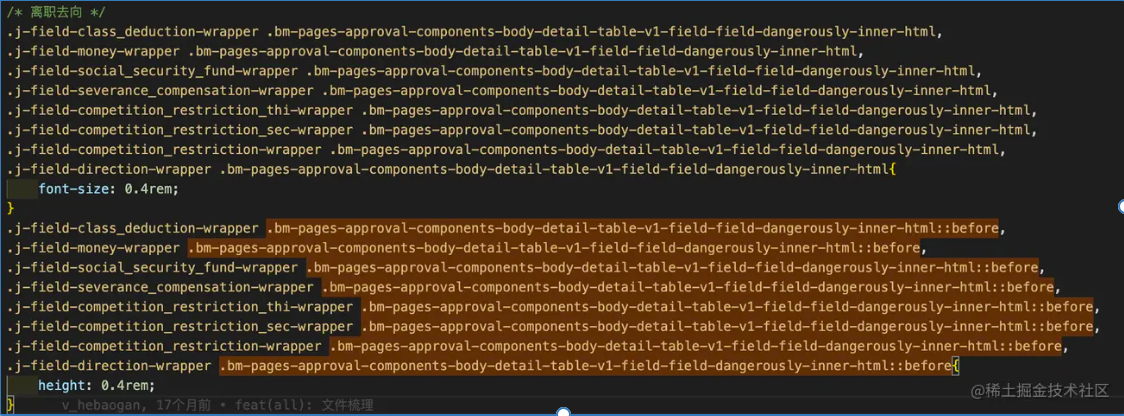 这两天在做一个需求,要通过引入css文件对现有表单样式做一些自定义修改,发现原有二开css样式文件里有大量类似的样式分组出现: