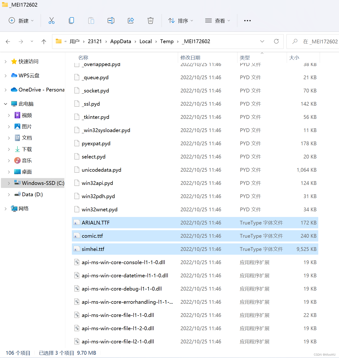 可以看到资源全部被临时释放到这里了。关闭程序后再次尝试进入此文件夹: