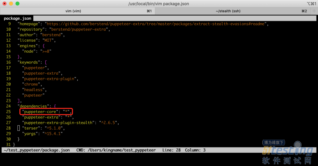 此时,你需要把它的package.json和index.js两个文件保存到本地。然后打开package.json文件,修改其中的dependencies这一项,把里面的puppeteer改成puppeteer-core,如下图所示:
