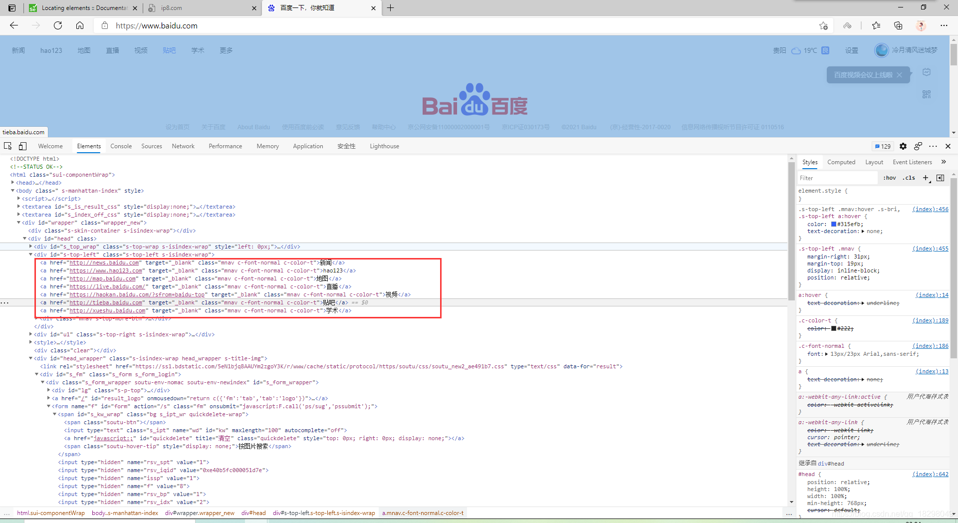 定位贴吧元素示例代码如下: