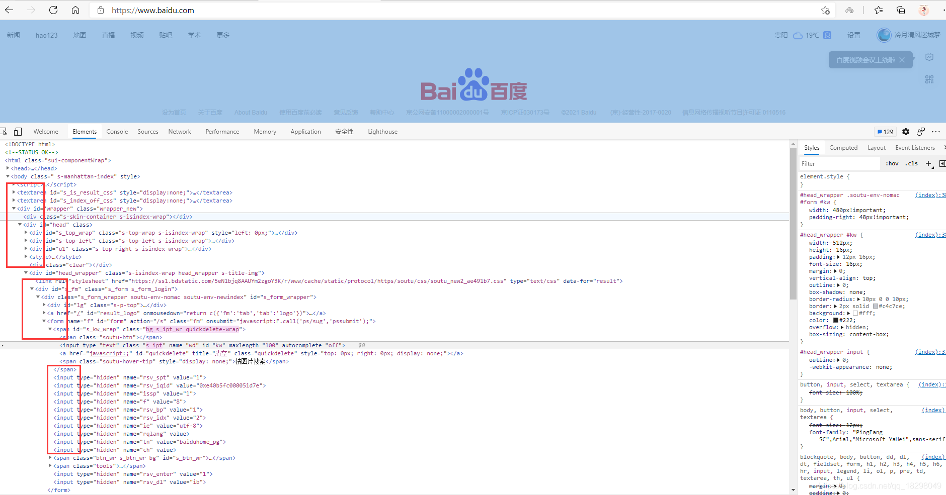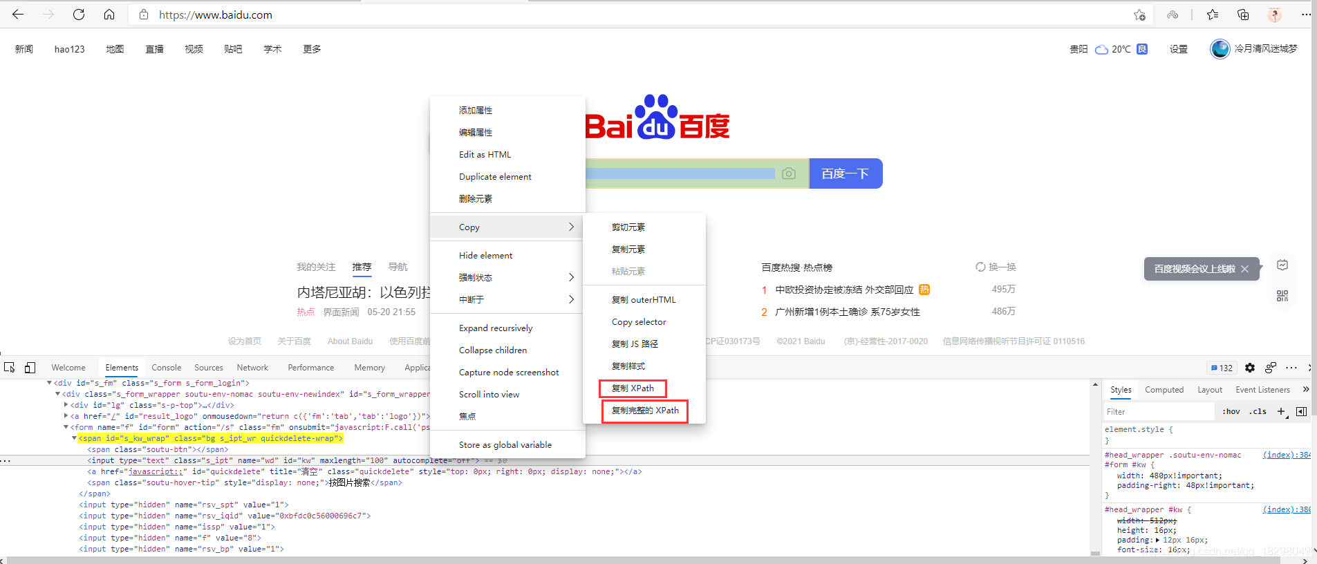 由于语法较为复杂,以下通过查找百度首页输入框的方式进行举例说明,输入框的html层级如下