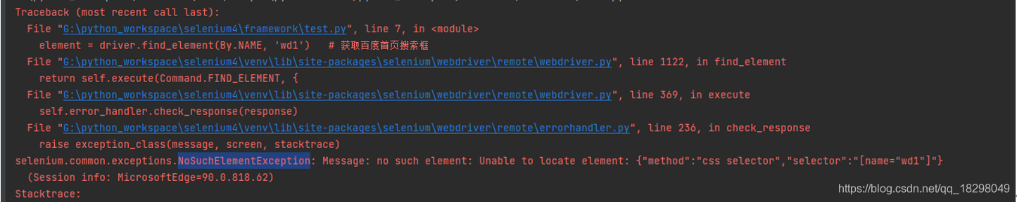 element = driver.find_element(By.NAME, 'wd') # 通过name定位搜索框